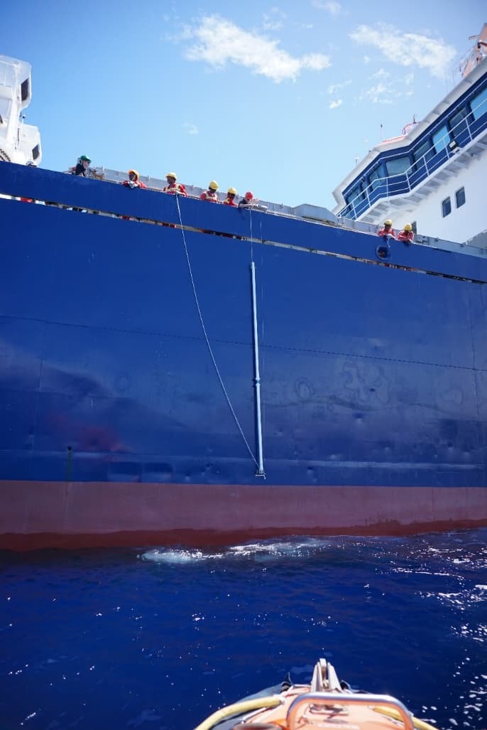 For the Ek80 calibration of our three large vessels Atalante (85m), Pourquoi Pas? (107m) and Marion Dufresne (120m) we are now using our Bille automated system with magnetic poles close to the sea surface, a zodiac is needed for fixing the poles on the hull